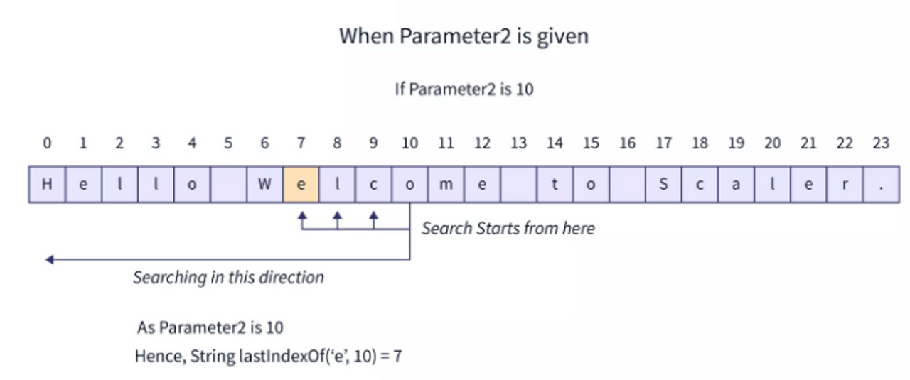 lastIndexOf('e',10) 처럼 2번째 인자로 10을 주었다면 10번 인덱스부터 탐색을 시작하는데