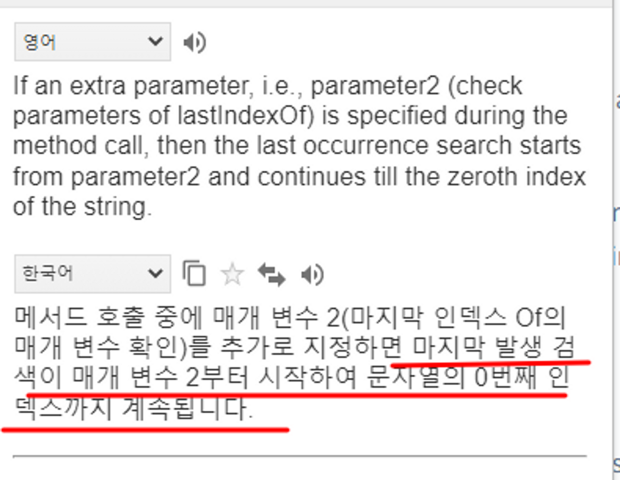 2번째 파라미터는 선언하면 그 인덱스에서 시작하여 마지막 index를 찾는 것으로 알려져 있다.