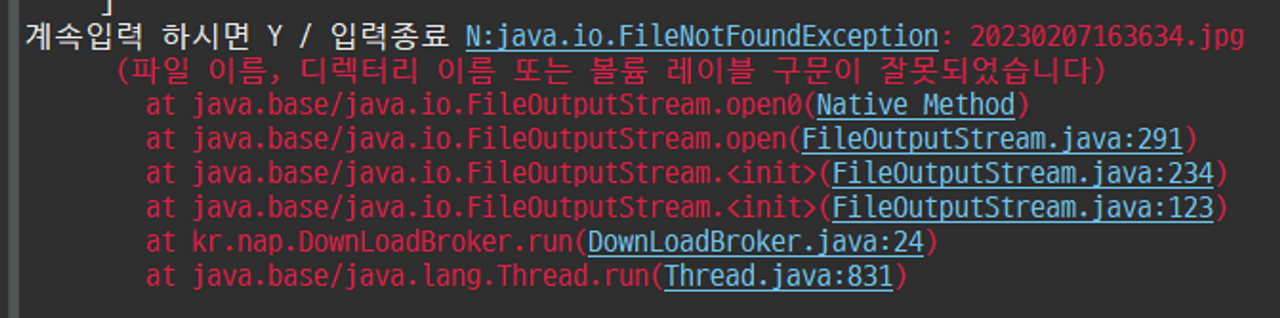 FileOutputStrema(fileName)을 통해 이미지 파일을 생성하고, 이를 통해 엑셀파일을 만드는 작업을 하고 있었다.