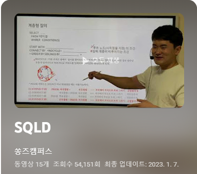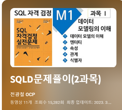 검색 키워드를 "SQLD"로 해서 모르는 문제 있으면 물어보고