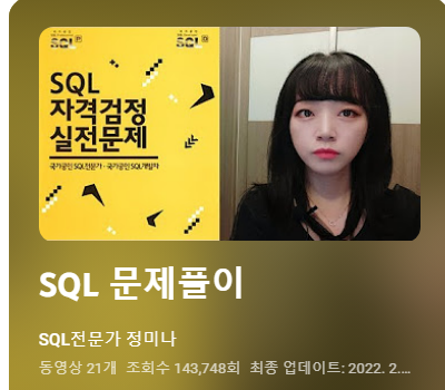 해당 유튜브 강의의 기출문제를 풀면서 SQLD시험이 대략 이렇게 출제되는구나~ 라고 생각하면서 감을 잡는다.
